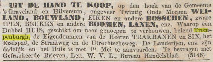 Trompenburgh. Deze buitenplaats werd in opdracht van admiraal Cornelis