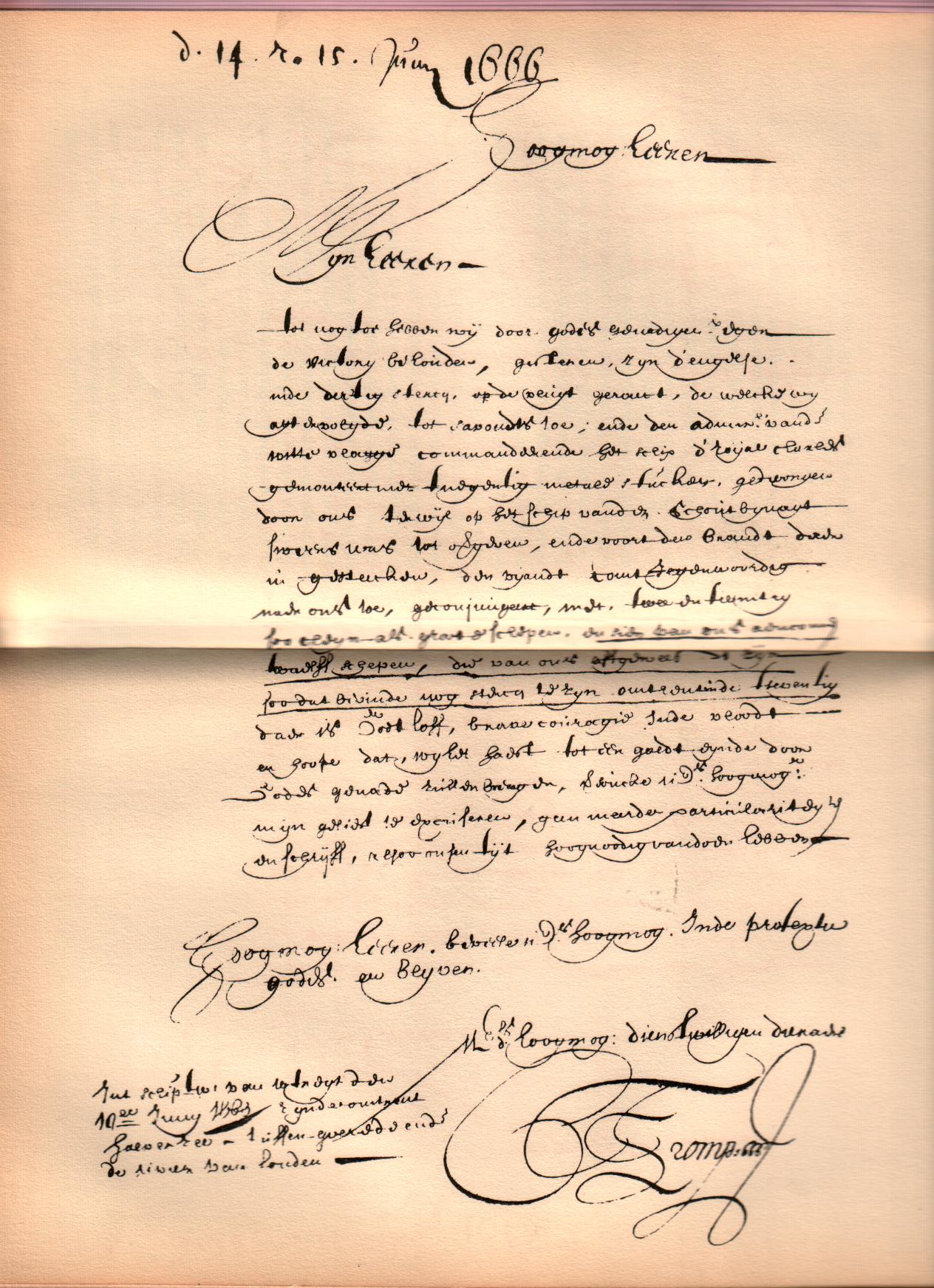 Gisteren hebben wij den dans aangegaen, en ben, Godt sy gelooft, gesond, en hebben ons herte eens weder opghehaelt als keuningen. Ick ben op myn vierde Schip, ‘de Komeetstar,’ en meene vandaeg een braven dans te dansen. Wij krijgen de Franschen so aen 't loopen, dat zij bramzeyls en alles byzetten; en so het vandaeg so voortgaet, so hope ick, dat aller Vrienden en ons gebed verhoort sal zijn, en dat wij van de tirannye verlost zullen worden. Adieu! Couragie! `t sal waerachtig wel gaen.